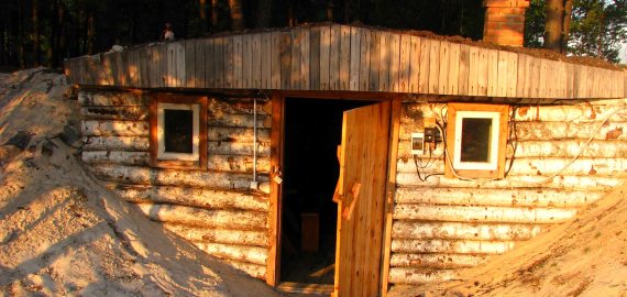 На строительство этой землянки нас вдохновил природный ландшафт. Небольшой овраг возле пруда на территории хутора идеально подходит для этих целей. Землянка устроена по всем правилам военного времени. В ней вполне комфортно можно жить некоторое время. Особенно нравится гостям прятаться в прохладе землянки после жаркого пляжа у пруда.
